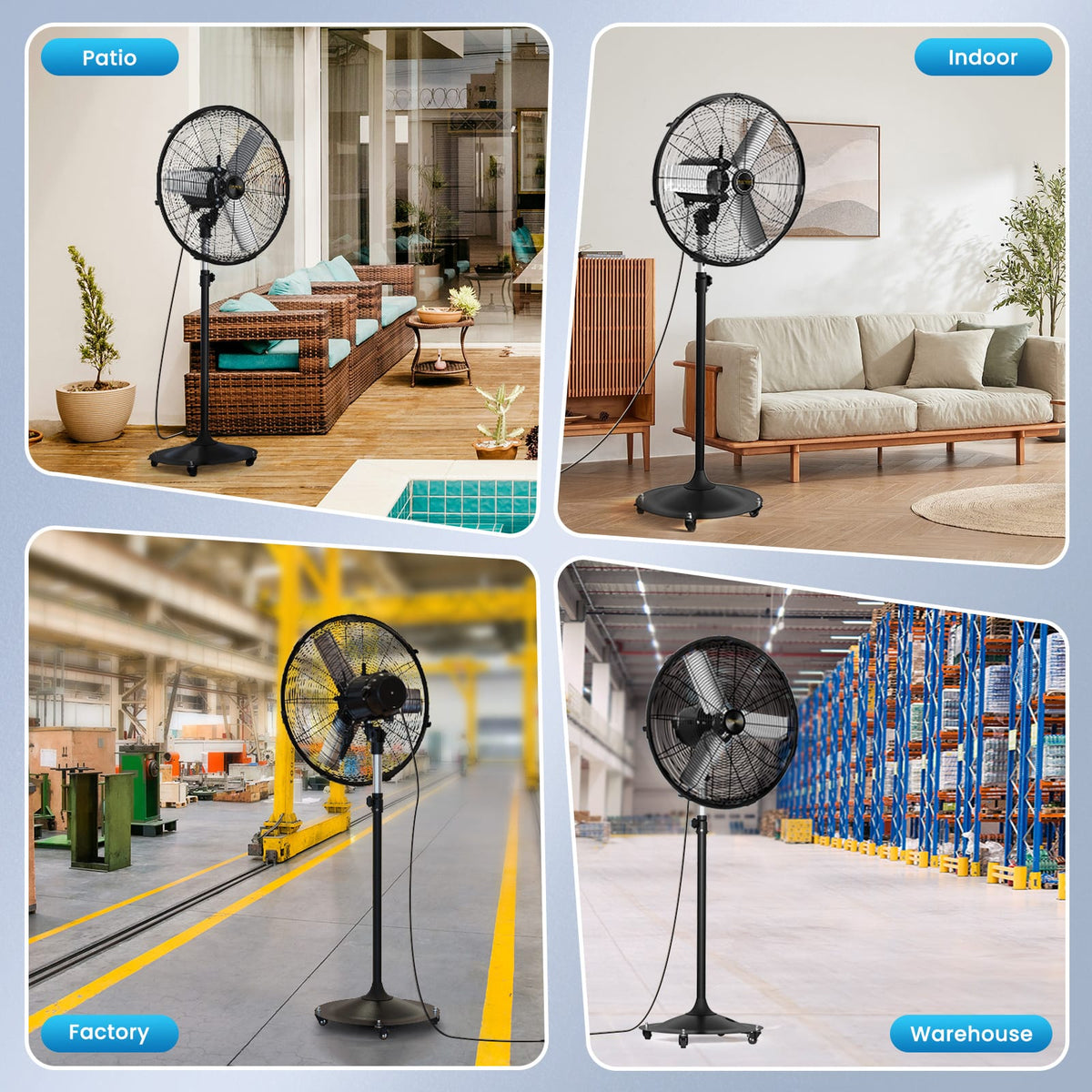 - EASILY MOVE IT ANYWHERE YOU NEED: Equipped with 4 smooth wheels and lock mechanisms, this standing fan moves effortlessly to any room or outdoor space and stays securely in place. The wheels are optional—if you don’t need to move the fan, simply leave them uninstalled.