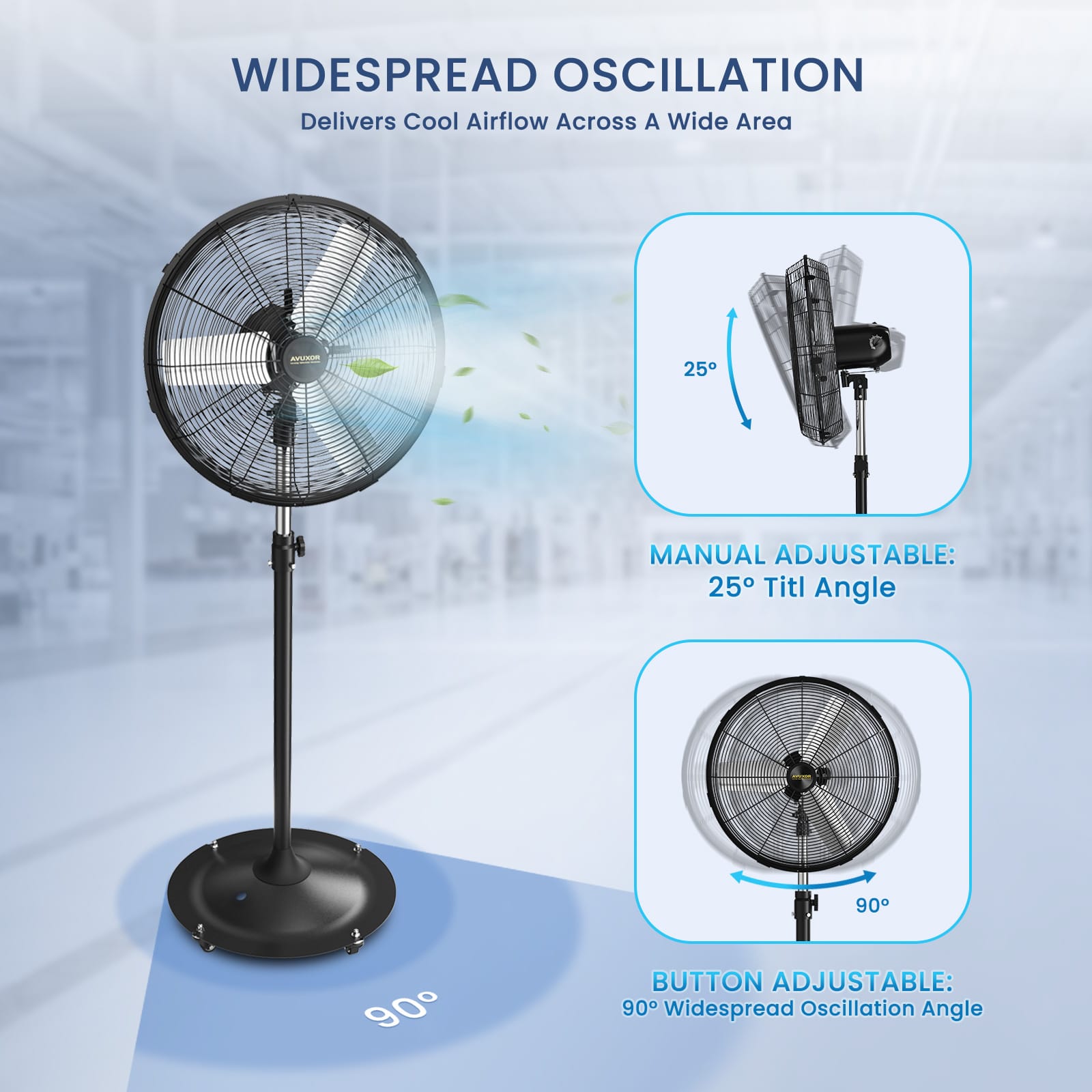 - WIDESPREAD OSCILLATION: This oscillating fan delivers cool airflow across a wide area, height-adjustable, 90° motorized oscillation and 25° manual tilt. An ideal standing fan to keep you cool on hot days.