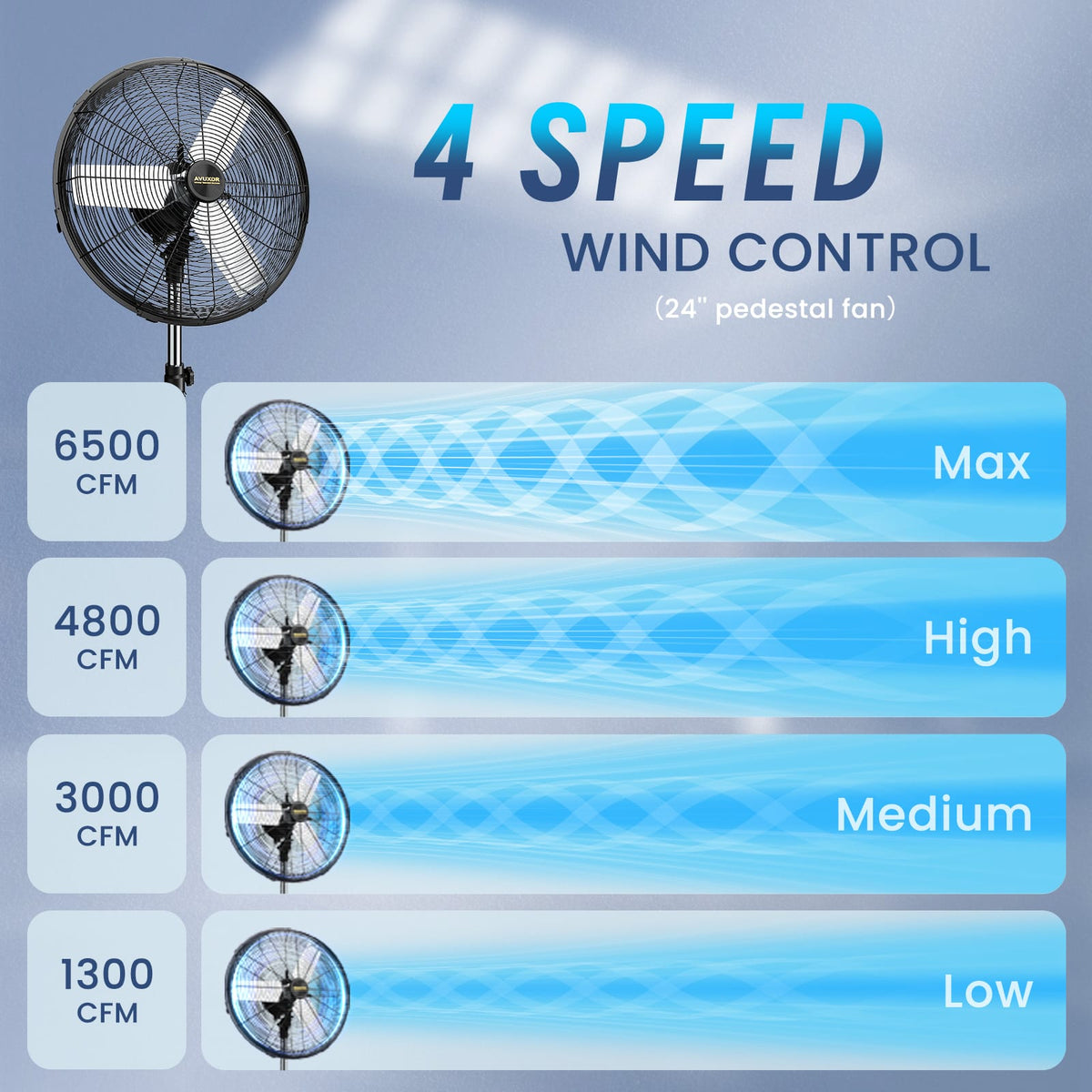 - ALL-SEALED BLDC MOTOR: Our pedestal fan uses all-sealed brushless DC motor, waterproof & dustproof. Runs quieter, lasts longer, and saves 40–80% more energy than traditional AC motors. Low heat generation allows 24h continuous use without overheating—ideal as a waterproof outdoor fan or industrial fan. An energy-efficient and eco-friendly choice for for commerce or industry.