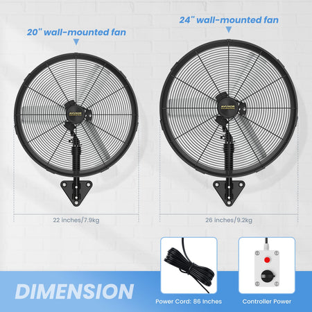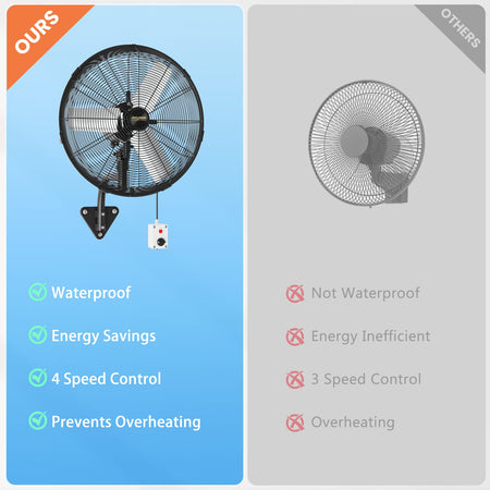 - ALL-SEALED BLDC MOTOR: Our wall fan uses all-sealed brushless DC motor, waterproof & dustproof. Runs quieter, lasts longer, and saves 40–80% more energy than traditional AC motors. Low heat generation allows 24h continuous use without overheating—ideal as a waterproof outdoor fan or industrial fan. An energy-efficient and eco-friendly choice for for commerce or industry.